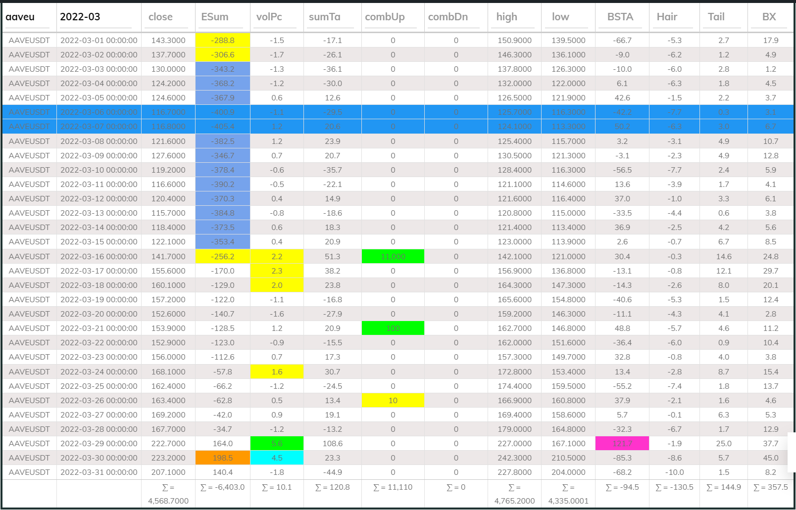 Every Data table will help us to tell a Data Story. Use these Data Story and help us making better trading decision. Please take note, there are outlines coins where does not behave like major coins.